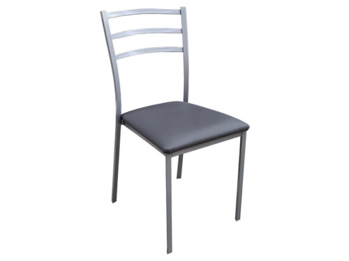 Καρέκλα μεταλλική ΤΡΙΓΩΝΙΚΗ ασημί με δερματίνη μαύρη