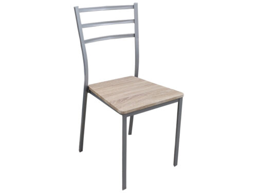 Καρέκλα μεταλλική ασημί “ΤΡΙΓΩΝΙΚΗ” με ξύλο στο κάθισμα