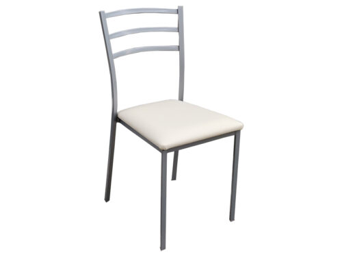 Καρέκλα μεταλλική σε ασημί χρώμα με δερματίνη εκρού στο κάθισμα