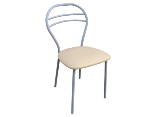 Καρέκλα μεταλλική σε ασημί χρώμα με δερματίνη εκρού στο κάθισμα
